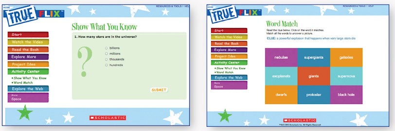 Every TrueFlix topic is accompanied by a lesson plan with teaching activities that are tied to the specific content of that TrueFlix topic. Every lesson plan includes a discussion of the video and a review of the vocabulary words used.
